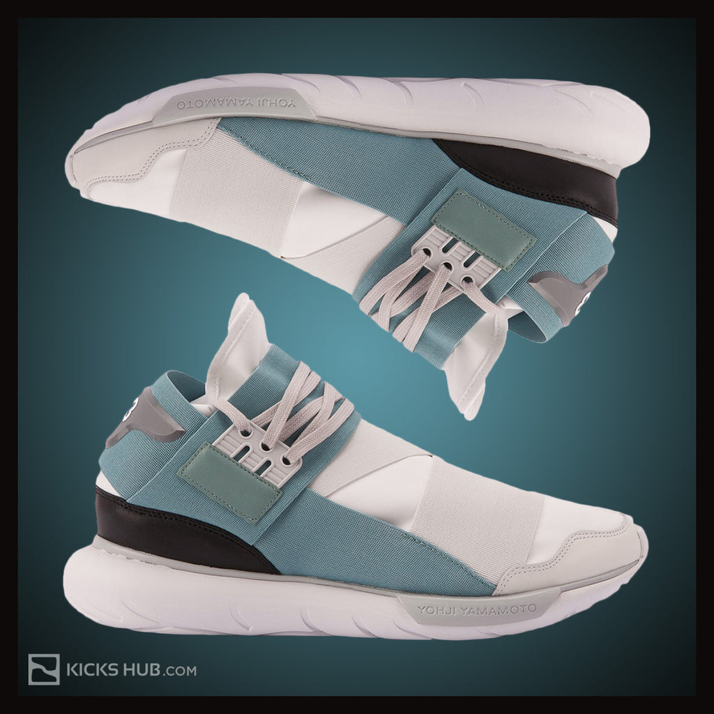 Y3 high-top neoprene sneakers in white with inserts inserts and round-toe. Tonal brushed leather trim throughout. Elasticated strap at heel. Lace-up closure with rubberized eyerows. Rubber sole. Composition: 70% lycra 30% leather.